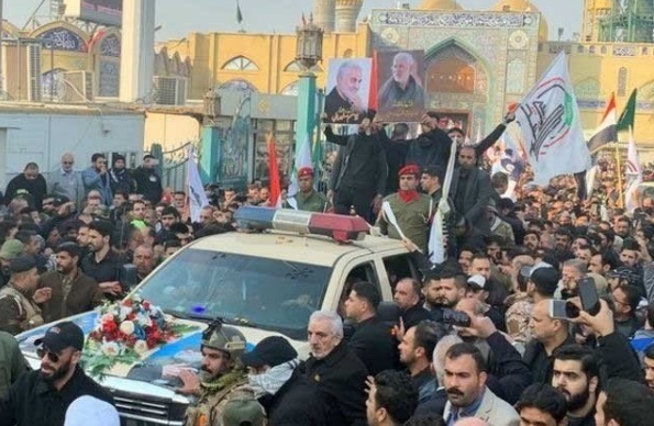 بغداد (ویب ڈیسک ،فوٹو:اسکرین شارٹ )امریکی فضائی حملے میں جاں بحق ایرانی جنرل قاسم سلیمانی