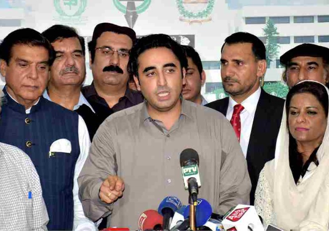 ایک سال قبل مبینہ دھاندلی کے خلاف اپوزیشن جماعتوں کے جلسہ سے خطاب کرتے ہوئے بلاول بھٹو زرداری نے کہاکہ پاکستان کا متفقہ آئین بھٹو شہید نے مفتی محمود دیگر کے ساتھ مل کر بنایا ،ہم نے ن لیگ کے ساتھ میثاق جمہوریت پر دستخط کیا، 18ویں ترمیم کے تحت 1973 کا آئین بحال کیا،ملک کےمفاد اور جمہوریت کیلیے ہم سب مل کرلڑے ، پاکستان میں جمہوریت خطرے میں ہے ،پچیس جولائی پاکستان کی تاریخ کا سیاہ ترین دن ہے ،آج پارلیمان اور جمہوریت نشانے پر ہے ،