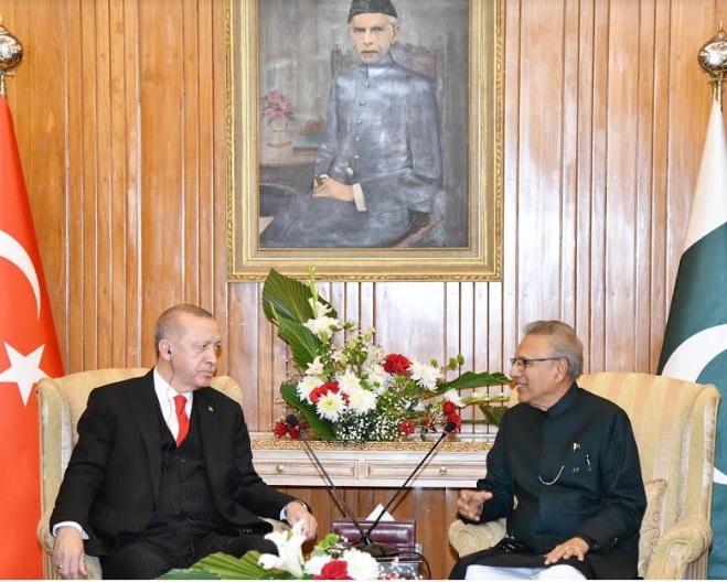 ترکی کے صدر رجب طیب اردوان نے جمعرات کو ایوان صدر میں صدر ڈاکٹر عارف علوی سے ملاقات کی۔ صدر اردوان اعلیٰ سطح کے سٹرٹیجک تعاون کونسل (ایچ ایل ایس سی سی) کے چھٹے اجلاس کےلئے پاکستان کے دورہ پر ہیں۔ صدر پاکستان نے صدر اردوان کا پرتپاک خیرمقدم کرتے ہوئے دونوں ممالک کے مابین بہتر اور کثیر الجہتی تعلقات پر خوشی کا اظہار کیا۔
