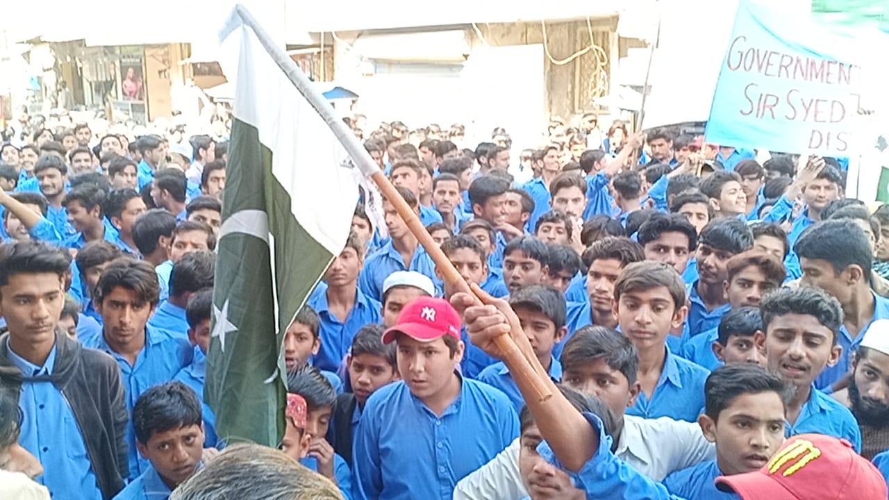 کرنے اور بھارتی پائلٹ کو زندہ گرفتار کرنیکی خوشی میں سرسید گورنمنٹ ہائی اسکول ٹنڈوآدم کی جانب سے اسکول تا پریس کلب ایک بڑی ریلی نکالی گئی