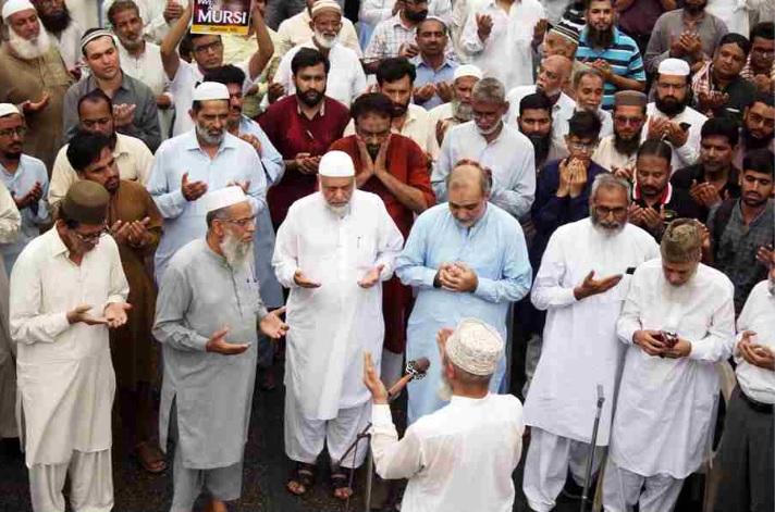 کراچی میں بھی غائبانہ نمازجنازہ ادا کی گئی،اس موقع پرجماعت اسلامی سندھ کے امیر محمد حسین محنتی نے سابق مصری صدر اور اخوان المسلمون کے اہم رہنماءڈاکٹر محمد مرسی کی شہادت پر دلی دکھ اور رنج کا اظہار کرتے ہوئے کہا ہے کہ مصری تاریخ کے پہلے منتخب صدر کی جیل میں شہادت امریکا ویورپ کی جمہوریت پسندی پر سوالیہ نشان ہے،