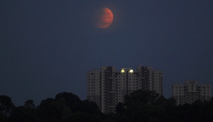 محکمہ موسمیات کے کلائمٹ ڈیٹا پراسسنگ سینٹر کے مطابق چاند گرہن کا آغازمنگل کی رات 11 بج کر 44 منٹ پر ہو ا،رات ایک بج کر 2 منٹ پر چاند کو جزوی گرہن لگا اور رات 2 بج کر 32 منٹ پر مکمل چاند گرہن ہوا جسے پاکستان سمیت یورپ، ایشیا، آسٹریلیا، افریقا، ساؤتھ ونارتھ امریکا، پیسیفک، اٹلانٹک، انڈین اوشین اور انٹارکٹیکا میں دیکھا گیا،