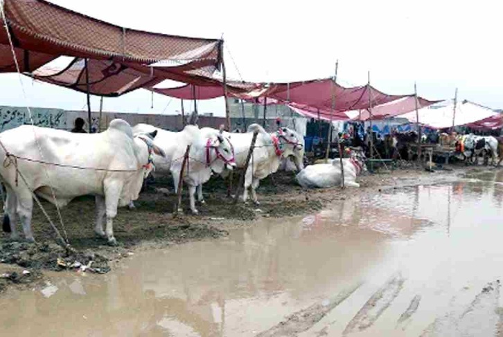 کراچی (رپورٹ : شازل احمد خان )کراچی میں موسلا دھار بارشوں کے باعث سپرہائی وے اورشہر دیگر علاقوں میں پانی بھرنے کی وجہ سے جانوروں کی فروخت میں کمی دیکھی جارہی ہے ،جبکہ ملک بھر سے جانور فروخت کیلئے لانے والے بیوپاری صورت حال سے پریشان ہے۔