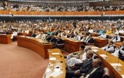 چور آیا کے نعرے لگائے گئے، اپوزیشن جماعتوں میں تقسیم بھی دیکھنے میں آئی، دونوں بڑی جماعتوں کے شورشرابے اور نعروں کے دوران جمعیت علماء اسلام (ف) کے ارکان ان جماعتوں سے اظہار ناراضگی کرتے ہوئے ایوان سے نکل گئے تھے، تینوں جماعتوں نے الگ الگ میڈیا سے گفتگو کی پاکستان مسلم لیگ ن کے ارکان نے احتسابی کارروائی کو یکطرفہ قرار دیتے ہوئے احتجاجاً بازوؤں پر سیاہ پٹیاں باندھ رکھی تھیں۔، اپوزیشن نے رات کی تاریکی میں عجلت کا مظاہرہ کرتے ہوئے، مشترکہ کا نوٹس جاری ہونے پر بھی اظہار تشویش کیا ہے۔ اپوزیشن نے واضح کیا ہے کہ اس طرح تو یونین کونسل کا اجلاس بھی طلب نہیں کیا جاتا جس طرح ریاست کے اعلیٰ ترین ادارے پارلیمنٹ کا اجلاس طلب کیا گیا ہے۔ جمعرات کی شام پارلیمنٹ کا مشترکہ اجلاس دس منٹ کی تاخیر سے پانچ بج کر 10منٹ پر شروع ہوا۔