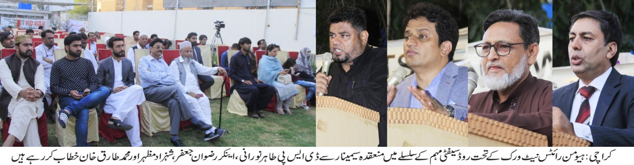 اسی سلسلے میں ہیومن رائٹس نیٹ ورک کے زیر اہتمام فاران کلب میں ایک سیمینار کا اہتمام کیا گیا جس کا عنوان روڈ سیفٹی،حادثات، اسباب اور سدباب تھا۔ تقریب میں شہر بھر سے منتخب سماجی کارکنان، طلبہ و مزدور رہنماؤں، قانون نافذ کرنے والے اداروں کے نمائندوں اور صحافیوں نے شرکت کی۔ مقررین نے موضوع کے مختلف پہلوؤں پر اظہار خیال کیا،ڈی ایس پی ٹریفک طاہر نورانی نے کہا کہ ملک کا ہرشہری قانون کی بالادستی چاہتا ہے مگر خود اس پر عمل کے لیے تیار نہیں ہے۔غیر ذمہ دارانہ ڈرائیونگ، تیز رفتاری، اوور لوڈنگ، فٹنس کلیئرنس نہ ہونا، غلط طریقے سے سڑک عبور کرنا حادثات کی وجوہات ہیں۔ انہوں نے کہا کہ شہر میں 60 فیصد ڈرائیور بغیر لائسنس گاڑیاں چلا رہے ہیں۔