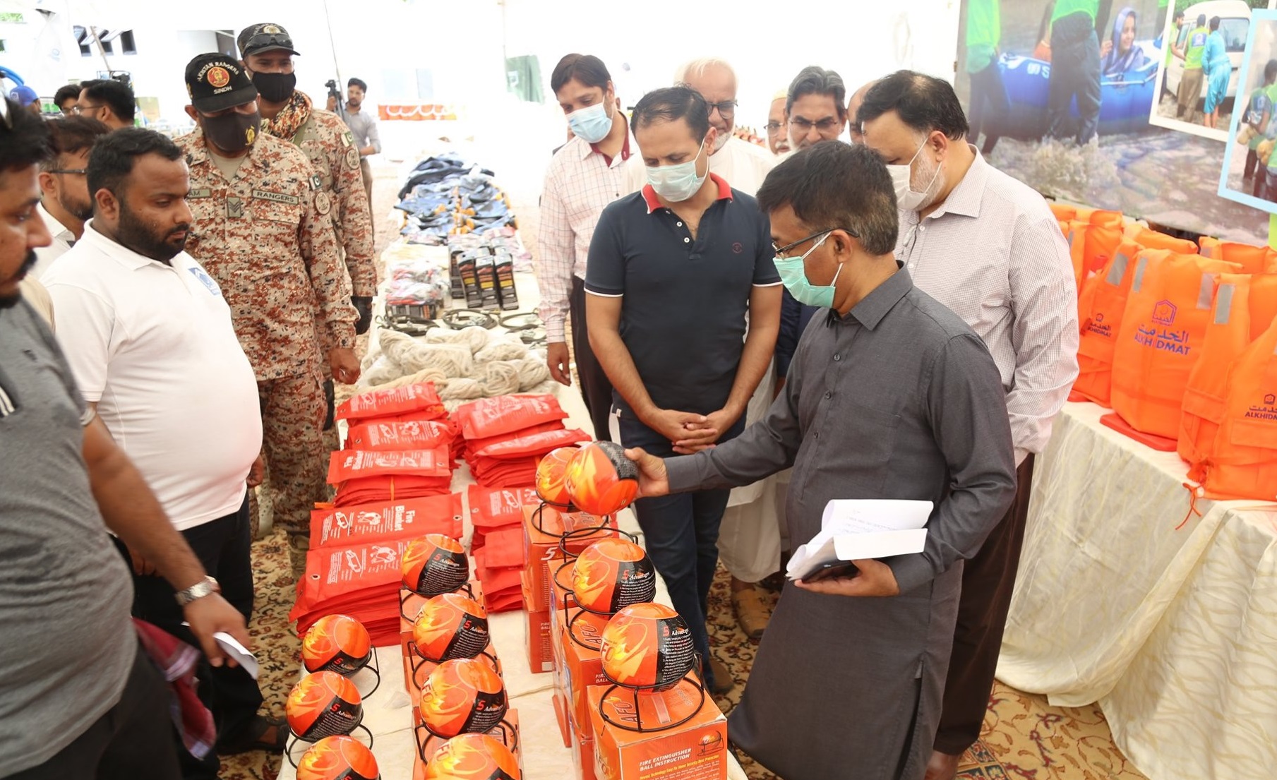 تقریب بہادرآد کلب کراچی میں منعقد کی گئی ،جہاںپر ایک جانب یہ سامان انتہائی ترتیب اور مہارت سے سجایا گیا تھا ۔ ´اس سامان میں واٹر بوٹ ،آگ بجھانے کیے آلات،لانگ بوٹ ،مختلف اقسام کے دستانے ،واٹر سوئمنگ جیکٹس،فرسٹ ایڈکٹس ،سیفٹی ہیلمٹ ،بیلچے ،کلہاڑیاں ،کدال ،مٹی اٹھانے والی ٹرالیاں ،ہتھوڑے،ڈرل مشینیں، کٹرز،تین فوڈ ،واتر کولرز،ہائی جین کٹس ،رسیاں ،رین سوٹ سمیت دیگر سامان شامل تھا ۔یہ تمام وہ اشیاءتھیں جو کسی بھی ممکنہ صورتحال سے نمٹنے کے لیے درکار ہوتی ہیں ۔