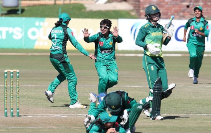 ۔پوچفسٹروم میں کھیلے گئے میچ میں پاکستان ویمن ٹیم نے ٹاس جیت کر فیلڈنگ کا فیصلہ کیا۔ جنوبی افریقی خواتین ٹیم شاندار پاکستانی بولنگ اٹیک کے سامنے جم کر کھڑی نہ رہ سکی اورپوری ٹیم صرف 63 رنز پر ڈھیر ہوگئی۔