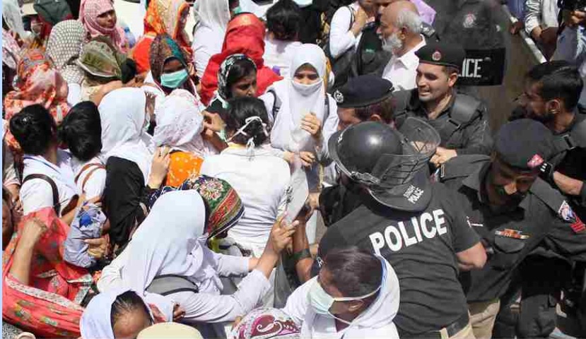 نرسزنےسندھ اسمبلی کے باہراحتجاج کیا بعد ازاں وزیراعلیٰ ہاؤس جانےکی بھی کوشش کی تو پولیس نے لاٹھی چارج کیااورنرسوں کےرہنما اعجاز کلیری سمیت متعدد مظاہرین کو حراست میں لے کر تھانے منتقل کر دیا۔ لاٹھی چارج سے متعدد نرسز زخمی بھی ہوئیں۔