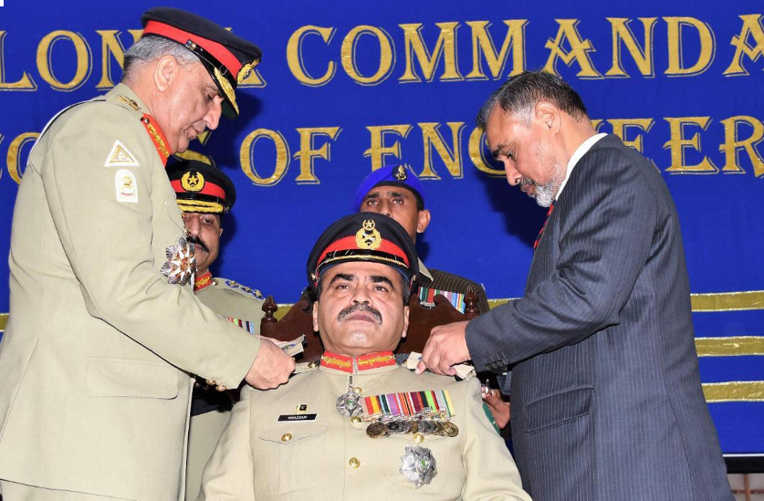 پاک فو ج کے شعبہ تعلقات عامہ(آئی ایس پی آر) کے مطابق جمعہ کو پاک فوج کے سربراہ جنرل قمر جاوید باجوہ نے انجینئرنگ سینٹر رسالپور کا دورہ کیا جہاں پر لیفٹیننٹ جنرل معظم اعجاز کو کمانڈنٹ انجنیئرنگ کور کے بیچزلگائے۔ سبکدوش ہونے والے کمانڈنٹ انجنیئرنگ کورلیفٹیننٹ جنرل(ر) جاوید محمود بخاری کے علاوہ پاک فوج کے حاضر اور ریٹائرڈ فوجی افسران اور شہداء کے خاندان شریک تھے۔